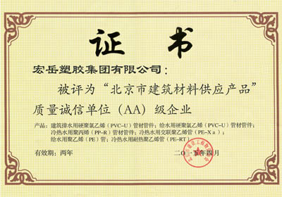 质量是产品的核心价值,诚信是企业的发展动力。凭借过硬的产品质量和良好的企业信誉,继2011年入选首批北京建筑材料供应单位产品质量诚信A级企业之后,2015年4月,好博获评北京建筑材料供应产品质量诚信AA级企业。
