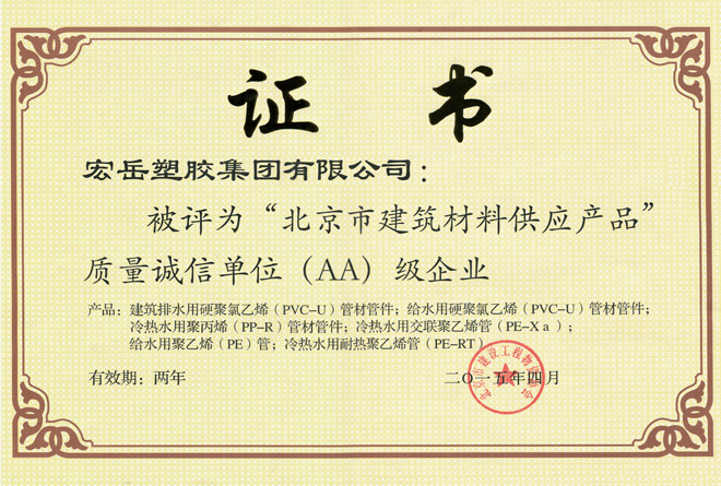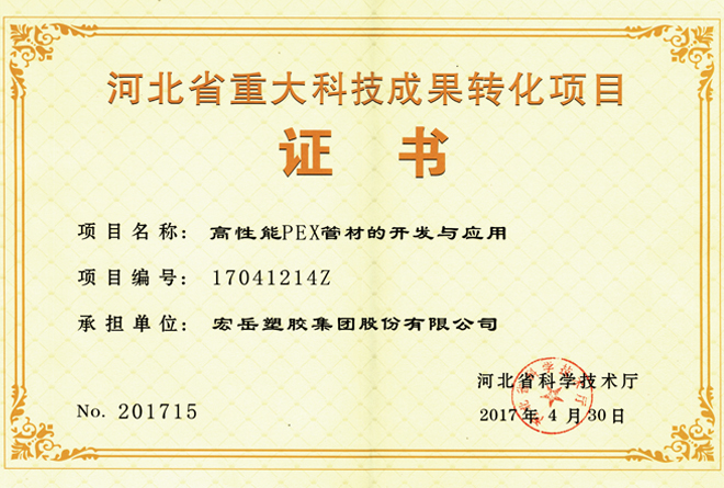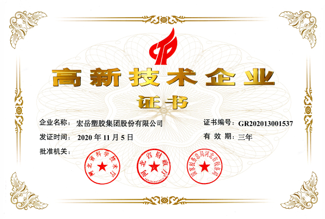 好博被认定为河北省高新技术企业,好博牌塑料管材管件被认定为国家免检产品。