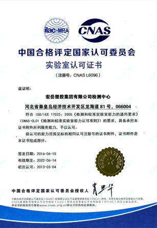 当选全国塑料制品标准化技术委员会会员,通过安全标准化认证,检测中心通过CNAS认证,被认定为河北省企业技术中心。