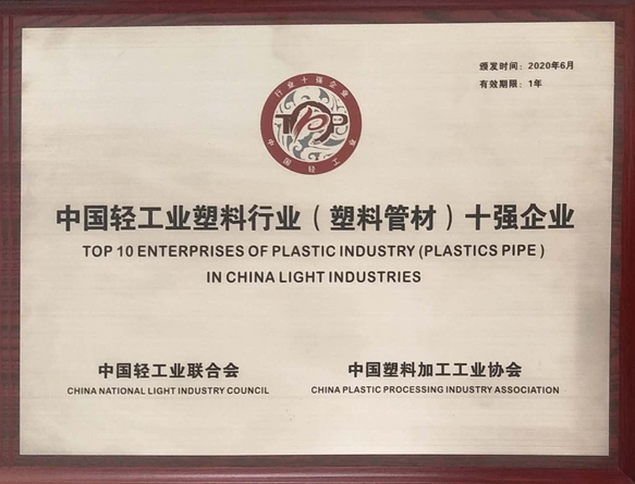 荣获河北省管材管件十强企业。