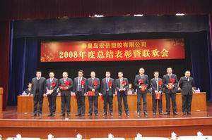 12月26日,秦皇岛好博塑胶有限公司2008年度总结表彰暨联欢会在开发区管委报告厅拉开帷幕,好博全体员工600余人整齐着装,欢聚一堂。