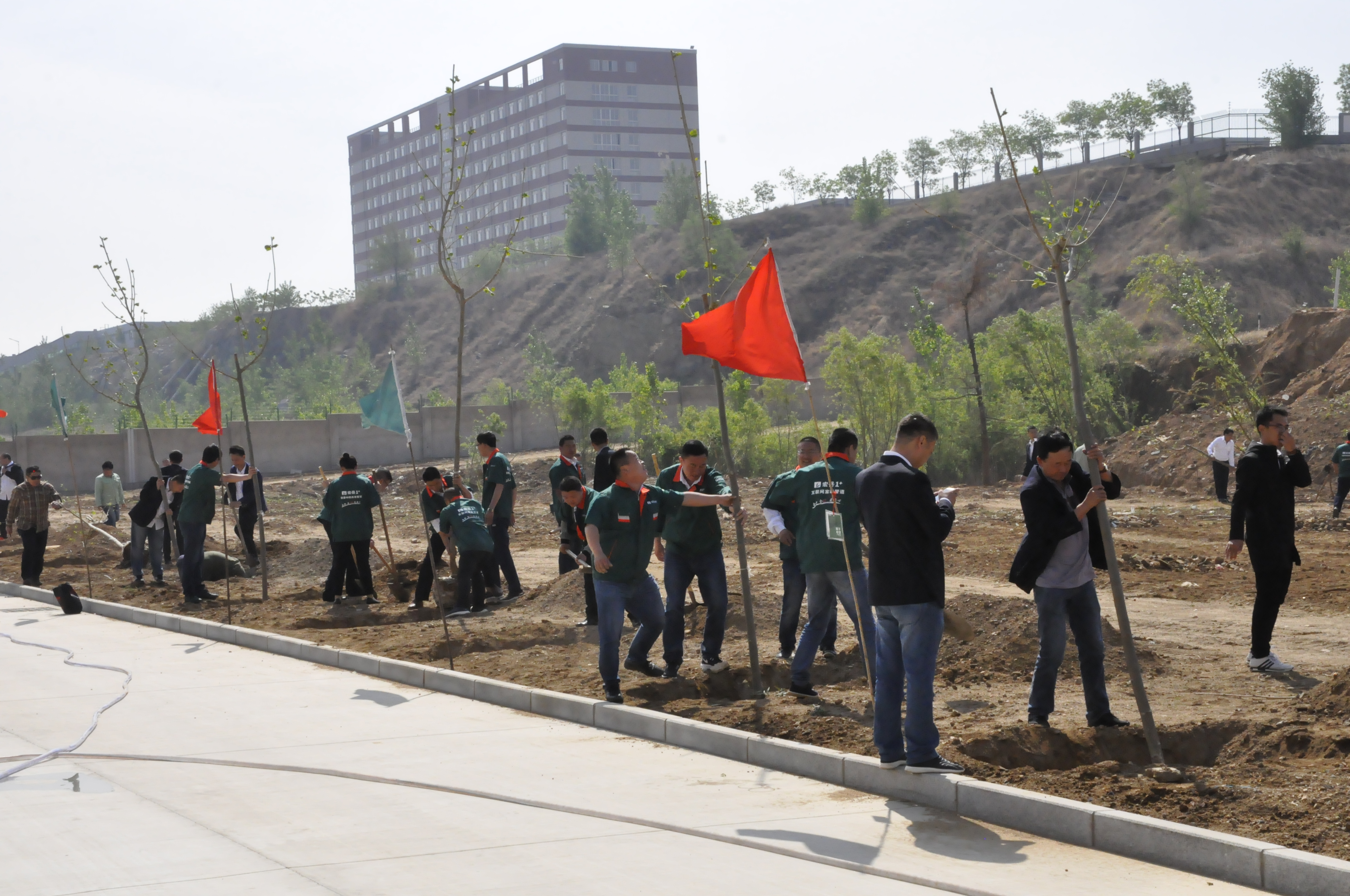 5月4日,好博集团组织职工在集团院内开展“植下希望,让梦想发芽”主题植树活动。植树活动前由集团行政马总详细地向大家讲解植树要领和技巧,在集团营销总监崔总的带领下,个个争先恐后,干劲热火朝天,有的挖土坑、有的安放树苗、有的填土夯实、有的提水浇灌,一个个多彩的身影在阳光下忙碌着,互相协作,交织成一幅幅生动的画面。经过一番热火朝天的劳动,一棵棵新树苗在明媚的春光里迎风挺立,把院内装点得更加生机盎然。