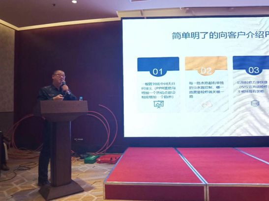 接下来,好博集团暖通工程师汪工为大家讲解了好博1+的施工标准、技术要点及综合产品系统,并着重介绍了好博1+“PE-Xa致纯冷热水管道系统”头尾一根管、维护更便利等独特优势,通过案例讲解、现场演示等方式,让参会人员切实的感受到不一样的产品、不一样的好博1+。