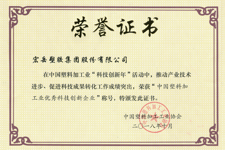 近日在中国塑料加工业“科技创新年”活动中,好博集团在推动产业技术进步、促进科技成果转化工作成绩突出,荣获“中国塑料加工业优秀科技创新企业”称号,彰显了好博加强科技创新和技术进步的信心和决心!