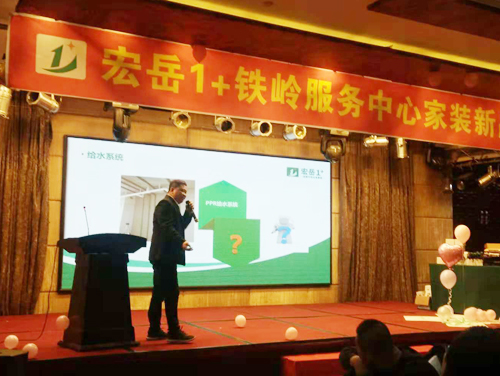 会议伊始,好博1+铁岭服务中心总经理任明浩致欢迎词,任总明确表示严格执行好博1+各项服务和专业化的施工体系,为用户提供优质安全的水电服务,让用户省心、放心。