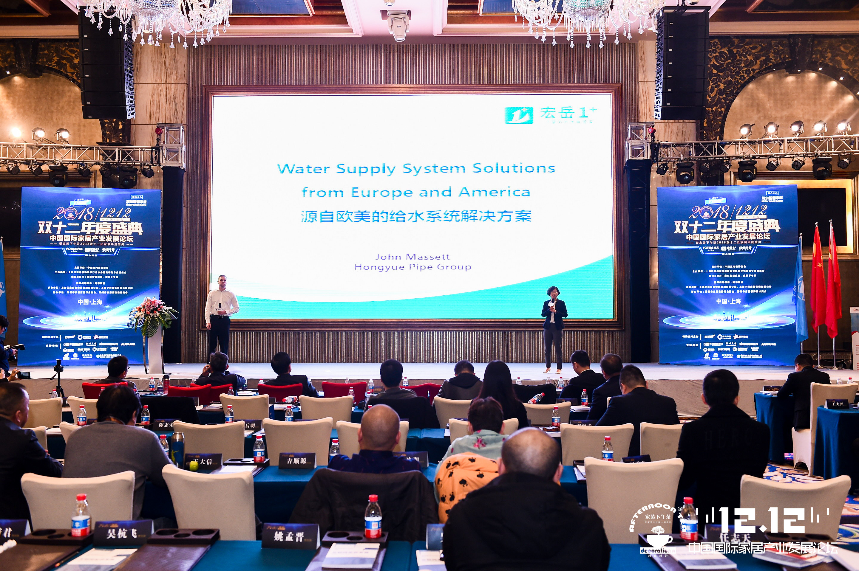 好博1+美国公司技术总监JOHN MASSETT先生在大会现场发表了“源自欧美的给水系统解决方案”的主题演讲,为与会者详尽介绍了PE-Xa零漏点给水系统的性能优势及PE-Xa产品在美国以及国际市场上广泛应用。该系统较目前市场主流给水系统降低70%的风险点,而耐压高67%、耐温高32%。,中英文互译的演讲形式为会议增添了浓厚的国际色彩,也让在场的家装精英们对于国际领先的产品系统与应用技术和好博1+都有了更深的认识与了解,现场反应非常热烈。