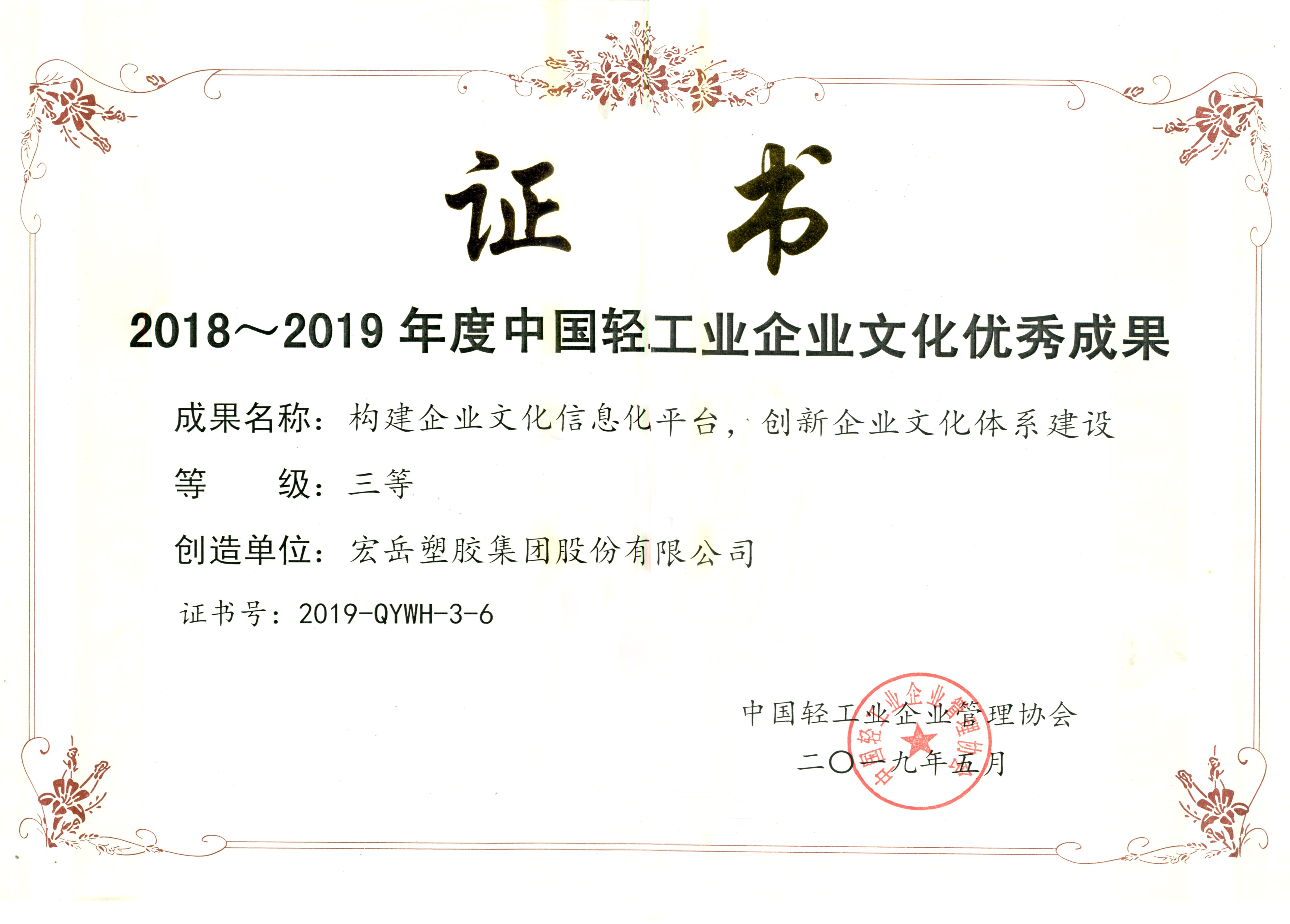 5月17日,中国轻工业企业管理协会第四届第五次理事(扩大)会议暨2019年轻工业企业文化建设经验交流会在郑州召开,好博集团申报的“构建企业文化信息化平台,创新企业文化体系建设”项目成果荣获2018~2019年度中国轻工行业企业文化优秀成果三等奖。