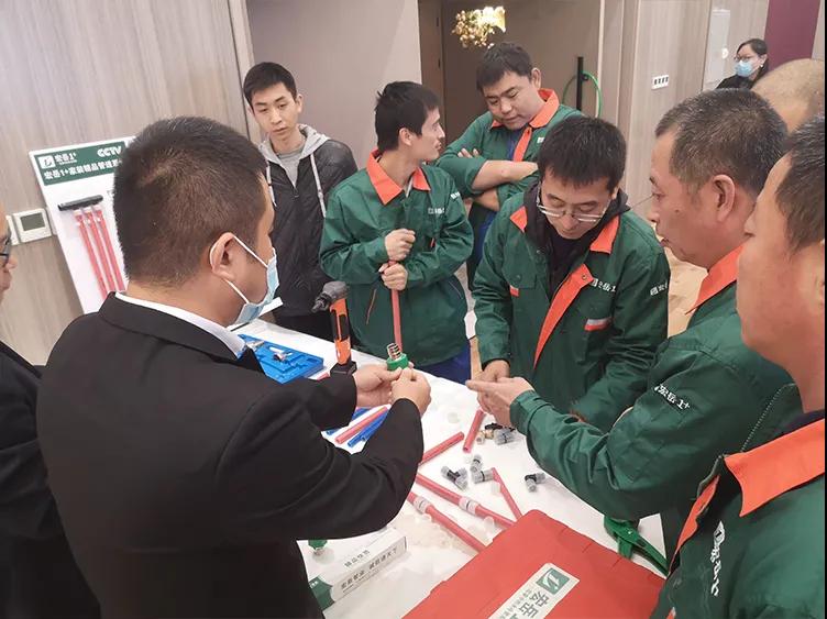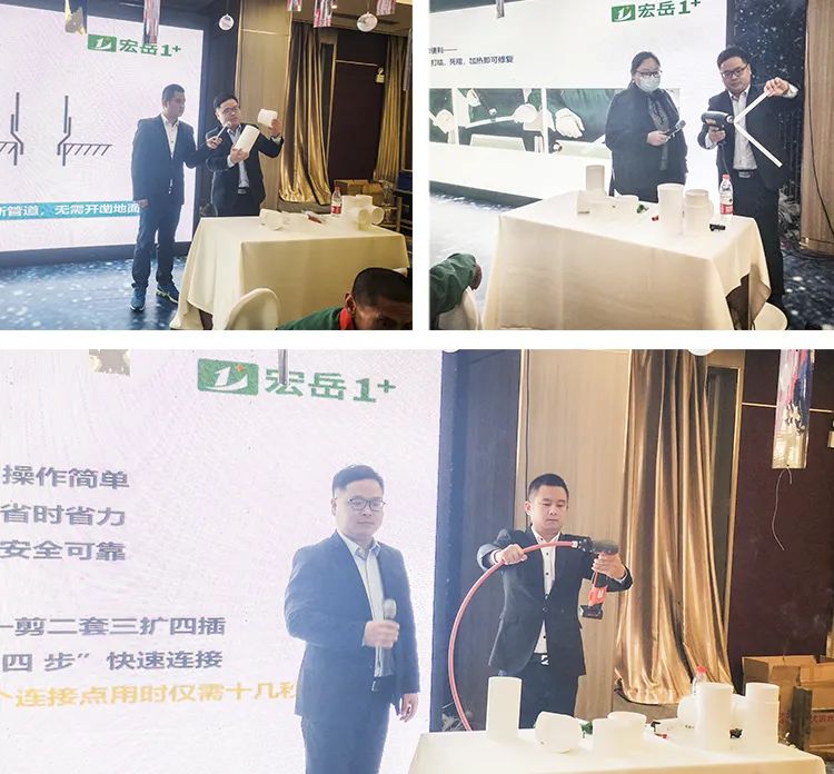 好博1+东北区域吕经理重点介绍了1+产品技术及应用知识,并为大家带来PVC缩口管件、PPR U型三通等创新产品,更着重介绍了PE-Xa管材,不仅通过现场实操展示了PE-Xa管道系统的安全性与便捷性,还首次公布多项对比数据,通过播放不同材质管材的性能对比实验影像再次验证了PE-Xa耐高温、耐高压、记忆性等优异性能,获得与会水电技师们一致认可。