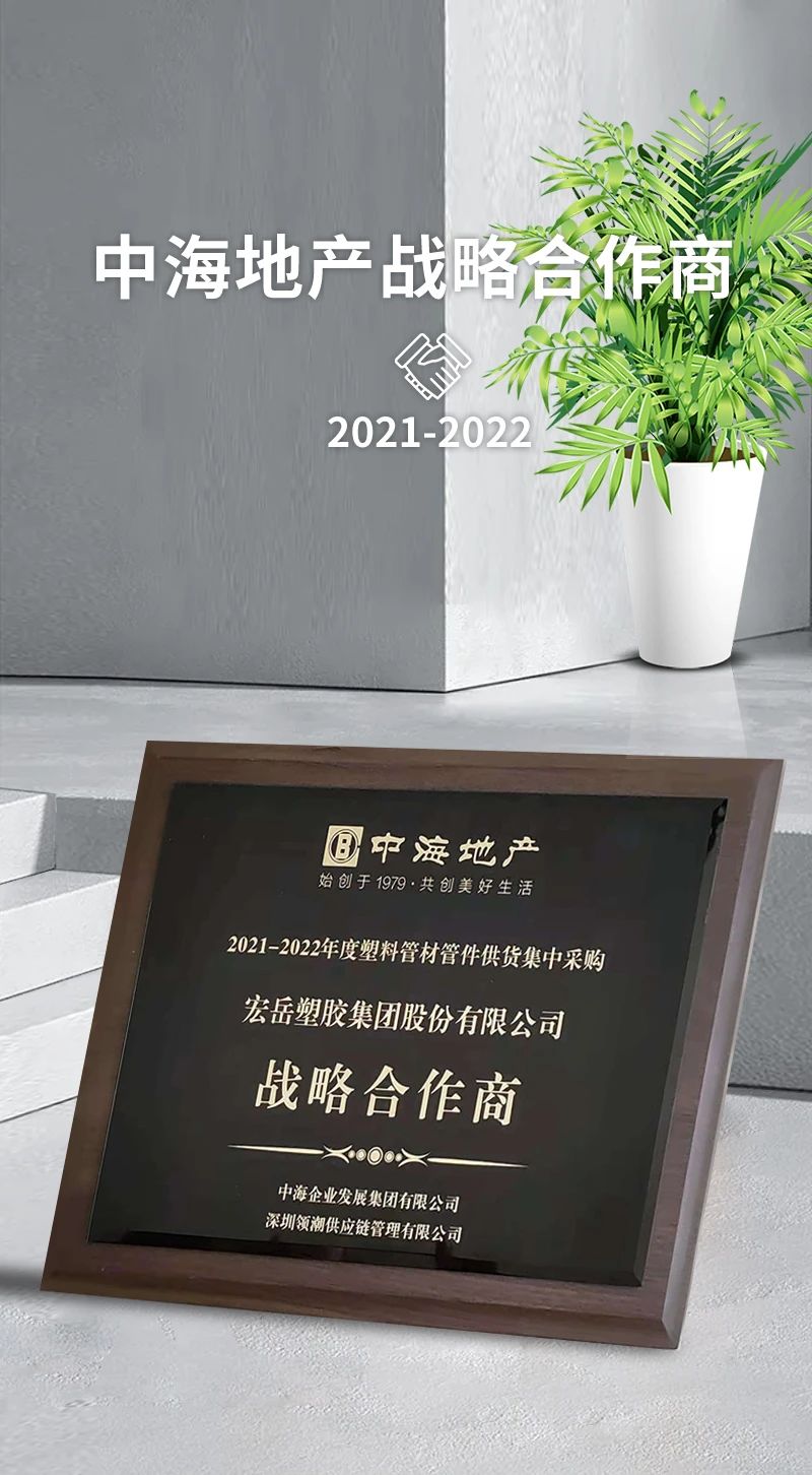 好博荣获中海地产2021-2022年度塑料管材管件供货集中采购战略合作商。