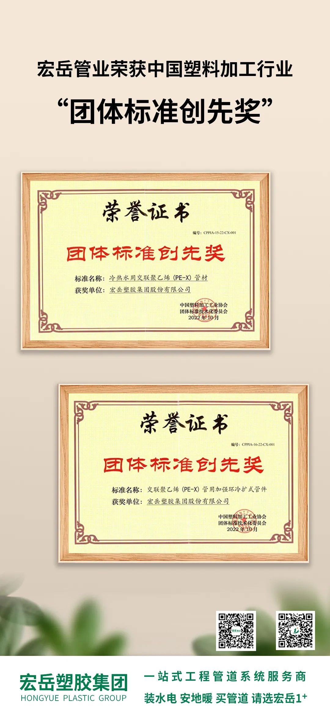 好博主导编制的《冷热水用交联聚乙烯(PE-X)管材》、《交联聚乙烯(PE-X)管用加强环冷扩式管件》两项团标,将产品及连接技术在专业的角度上给予了注解与规范,带动了行业新产品、新技术的推广和应用。